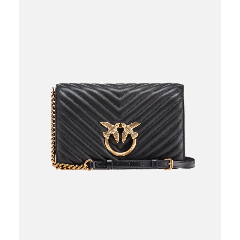 Classic Love Bag Click in quilted nappa with chevron pattern. The hidden automatic closure is completed by the iconic Love Birds Diamond Cut metal buckle with cut-out effect. The interior is lined in suede-effect microfibre and includes a partition closed