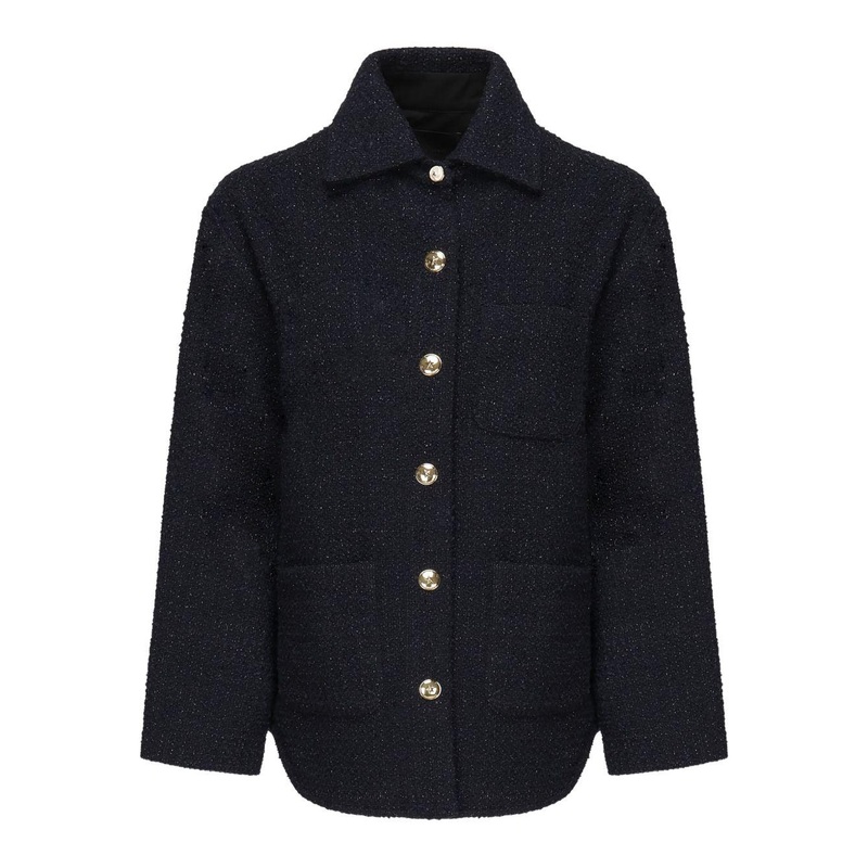 This stylish Pinko Blazer features a unique front closure adorned with gold-tone buttons and a star motif, offering a touch of elegance to your wardrobe. Designed with a pointed collar and long sleeves, this blazer combines sophistication with casual flair