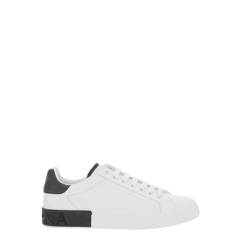 ‘Portofino’ White Low Top Sneakers with Logo Lettering on the Rear in Leather Man
