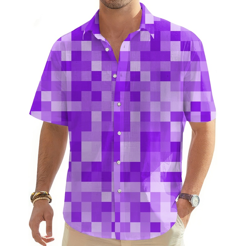 Purple Pixel Big Men’s Golf Hawaiian Shirts Button Down Shirt