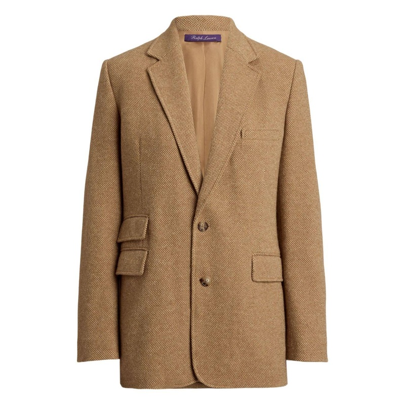 This elegant Ralph Lauren Blazer is a stylish addition to any woman's wardrobe. Designed with a two-button front closure and notch lapel, it features long sleeves with three-button cuffs, crafted from a sophisticated basketweave tweed fabric.The blazer inc