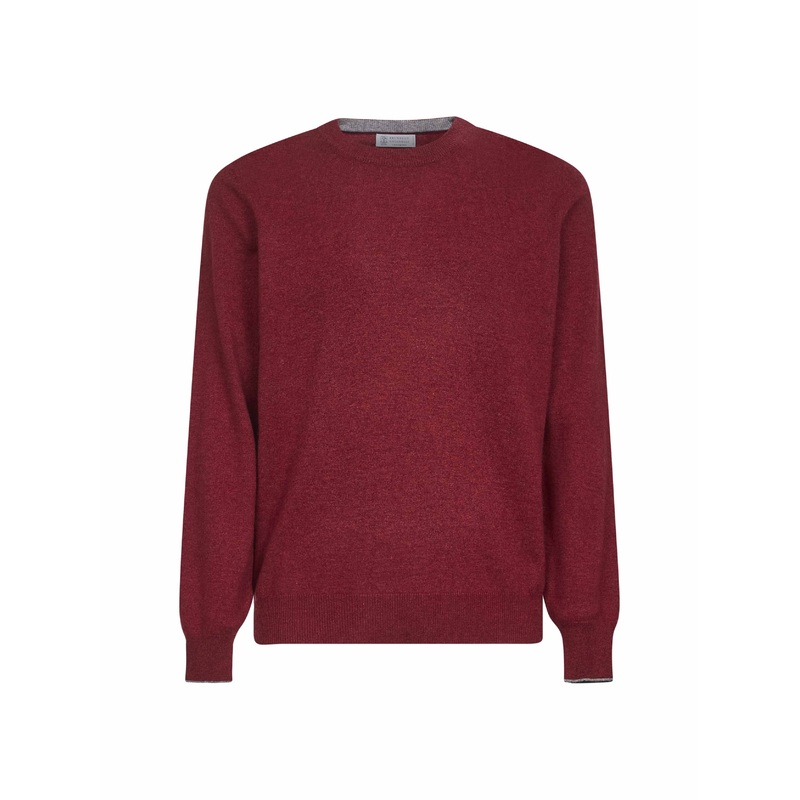 Ribbed crewneck, contrasting inner profile Long sleeves, contrasting cuff edges Ribbed cuffs and bottom band Plain stitch Regular fit Red color 100% Cashmere Made in Italy