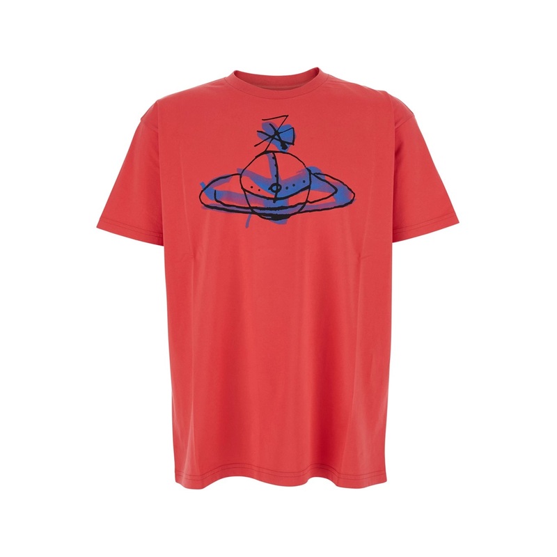 description" content=" t-shirt red crewneck short sleeves maxi orb on the front straight hem cotton regular fit - Shop online on Gaudenzi Boutique - Subscribe to our Newsletter a ...