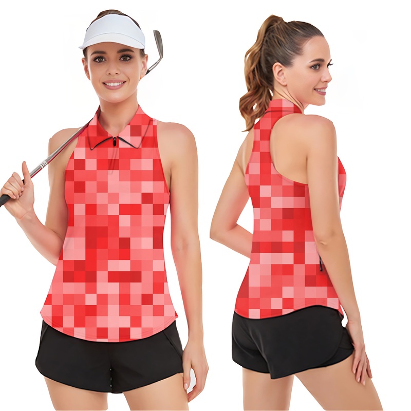 Red Pixel Big Womens Sleeveless Golf Tank Top Shirt Polo