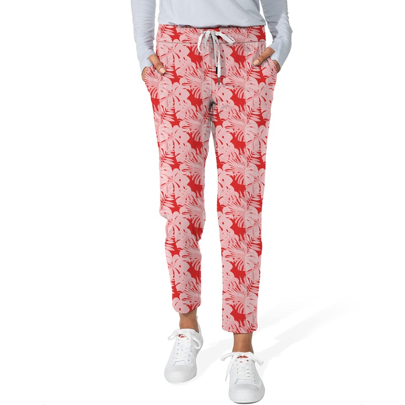 red tropical leaves and plants Women’s 7/8 Stretch Ankle Golf Pants