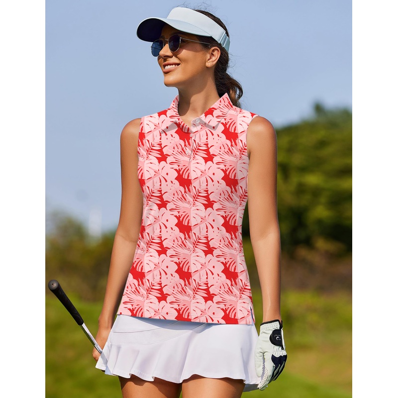 red tropical leaves and plants Women’s golf Sleeveless shirt