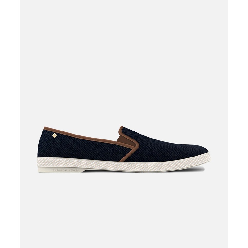 . Oxford and cotton . Golden rivet emblem . Leather edging . Terry lined . Insole in sheepskin . Rubber sole . Made in Spain