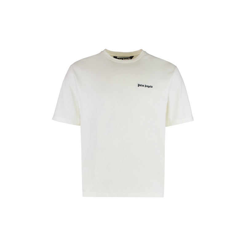 Short-sleeved T-shirt in white shades, crafted from a soft and breathable fabric.It features a classic collar and a discreet embroidered logo on the chest, offering a refined touch to your casual wardrobe.The fit is comfortable and ideal for creating versa