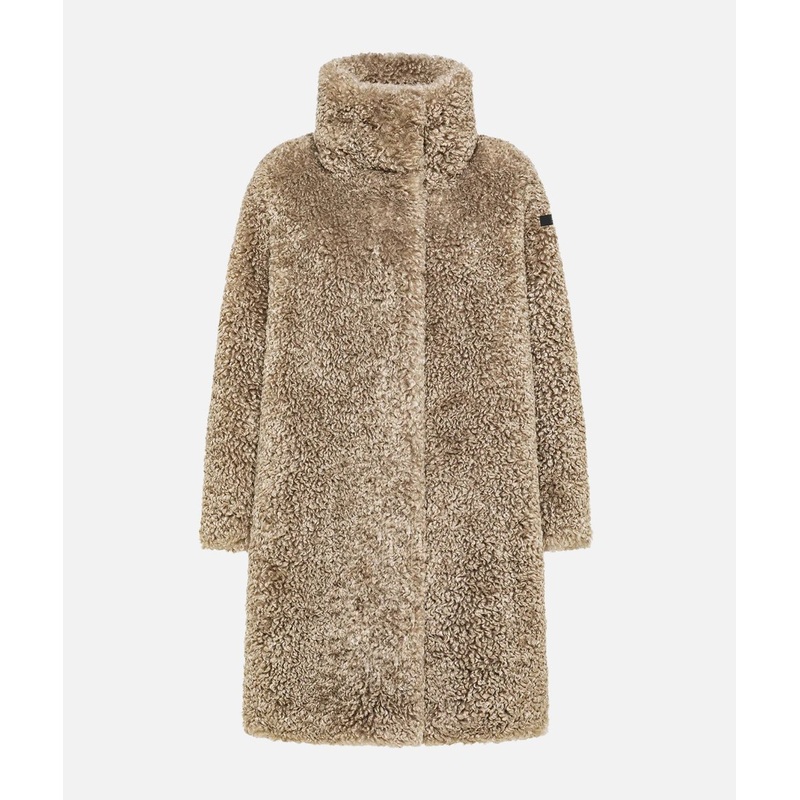 This faux fur teddy coat stands out for its elegant silhouette and unparalleled comfort. The combination of materials, featuring faux fur on the front and sleeves with cozy, warm duck down padding on the back, gives the piece a versatile and trendy look. The high, enveloping collar is the distinctive design element that adds character and protection from the season’s intense cold. Versatile and contemporary, the Lamb Hybrid Coat Women’s Jacket lends itself to a variety of combinations to create unparalleled, glamorous looks. Ideal with wide, faux suede palazzo pants, the coat embodies a modern and sophisticated take on winter. The black micro-injected logo on the left sleeve subtly highlights the uniqueness of this winter must-have.
