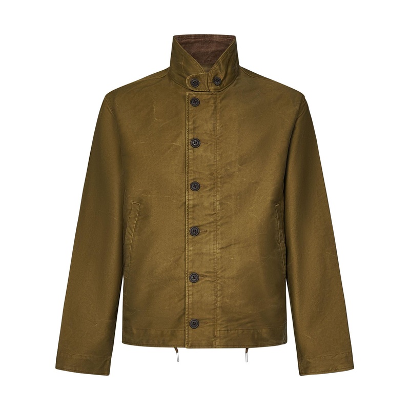 Elevate your outerwear collection with this exquisite jacket, designed for both style and functionality. The full-zip front with a buttoned storm placket ensures ultimate protection against the elements, while the luxurious corduroy shawl collar adds a sophisticated touch.