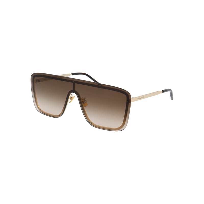 Elevate your style with these stunning Saint Laurent SL 364 MASK sunglasses in luxurious gold metal. These oversized mask-style frames feature an Asian fit design for optimal comfort and make a bold fashion statement wherever you go. Crafted in Italy with
