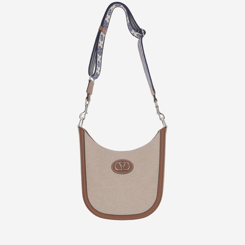 From Valentino, this Signature VLogo shoulder bag blends effortless elegance with meticulous craftsmanship. Constructed in cotton canvas with leather trims, it is defined by a bold frontal maxi VLogo and a versatile adjustable, removable canvas shoulder st