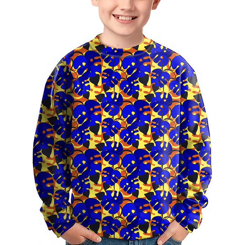 tropical leaves and plants Crewneck Pullover Kids Ugly Sweater