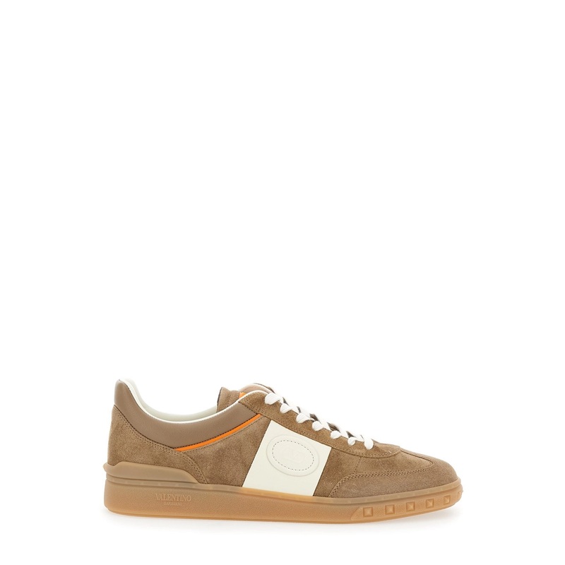 ‘Upvillage’ Brown Low Top Sneakers with Logo Patch on the Tongue and Rockstud Embellishments on the Sole in Suede Man