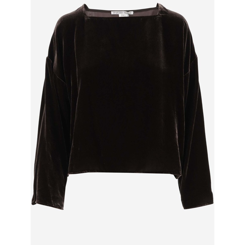 Viscose Blend Bateau Top|Dark Brown|M
