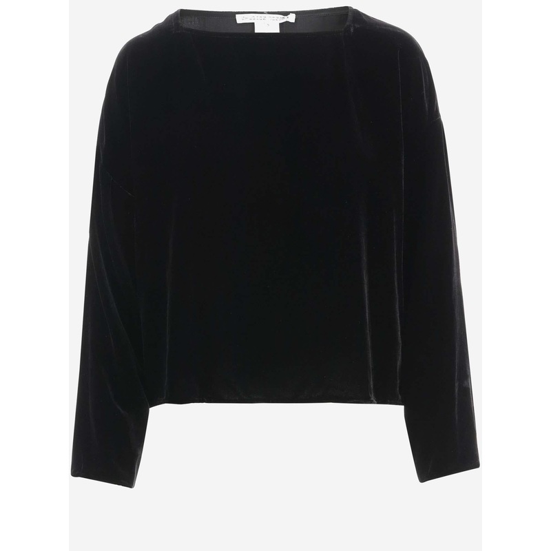 This elegant viscose-silk top combines fluid drape with refined tailoring for a polished everyday silhouette. Cut for a regular fit, it features a classic bateau neckline and long sleeves that complement the straight hem for effortless layering or a standa