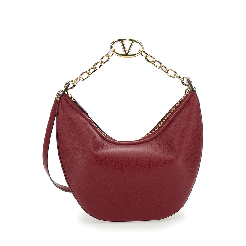 description” content=” shoulder bag bordeaux detachable shoulder strap in leather top handle in chain with vlogo detail gold tone metalware zip closure leather lining grainy leat …