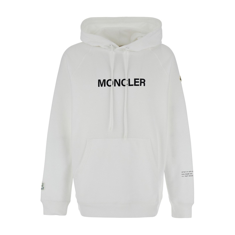 White Hoodie with Logo Lettering on the Front and Logo Print on the Rear in Cotton Man