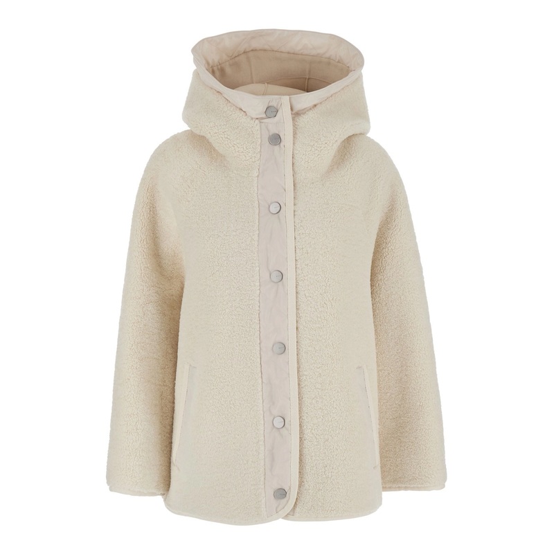 description” content=” jacket white hood with buttons long sleeves front button closure straight hem ecofur relaxed fit – Shop online on Gaudenzi Boutique – Subscribe to our News …