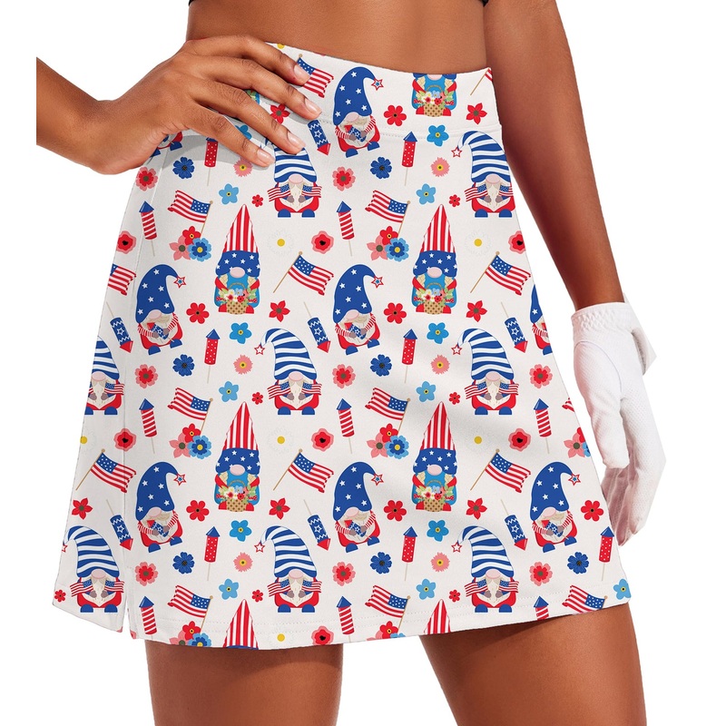 Women’s America Christmas Golf Skirts Inner Shorts Pocket