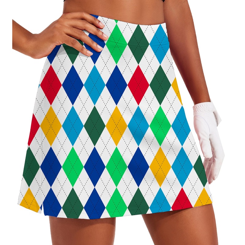 Women’s Argyle Colorful Golf Skirts Inner Shorts Pocket