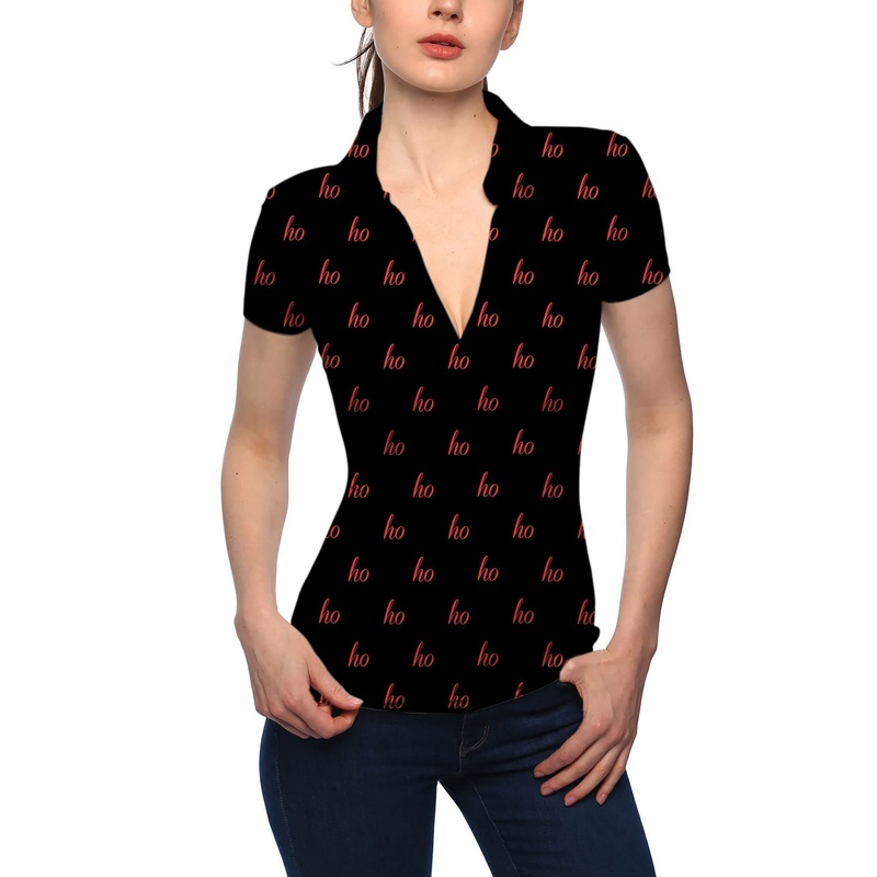 Women’s Black Custom Name Christmas V Neck Golf Polo