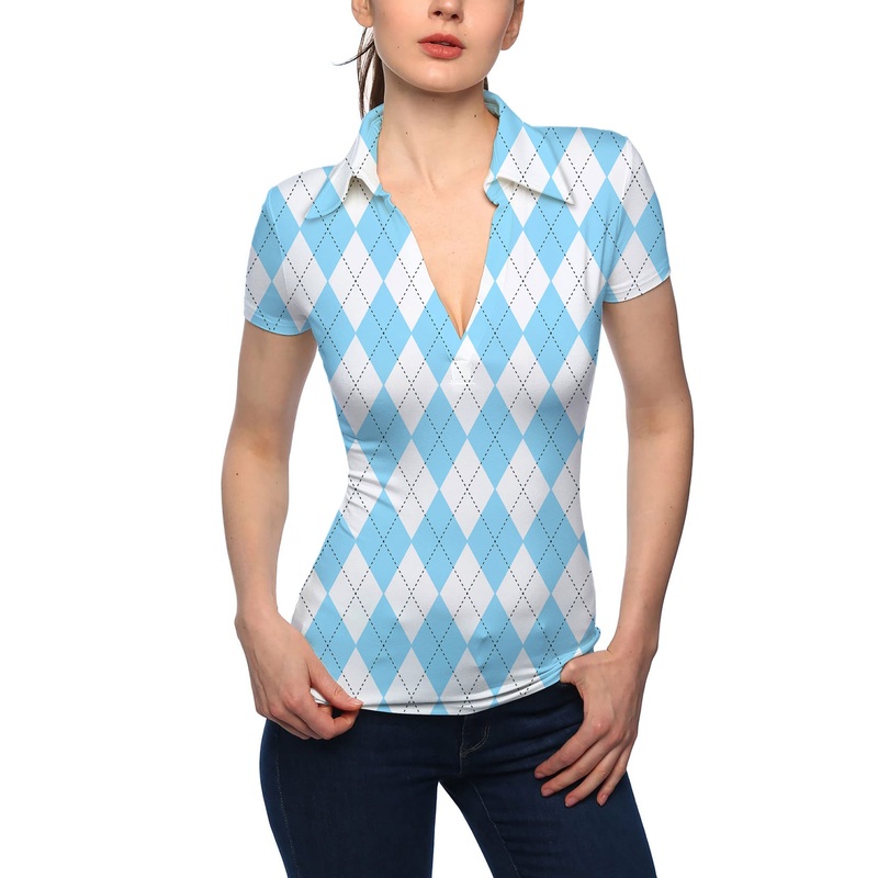 Women’s Blue diamond grid V Neck Argyle Golf Polo