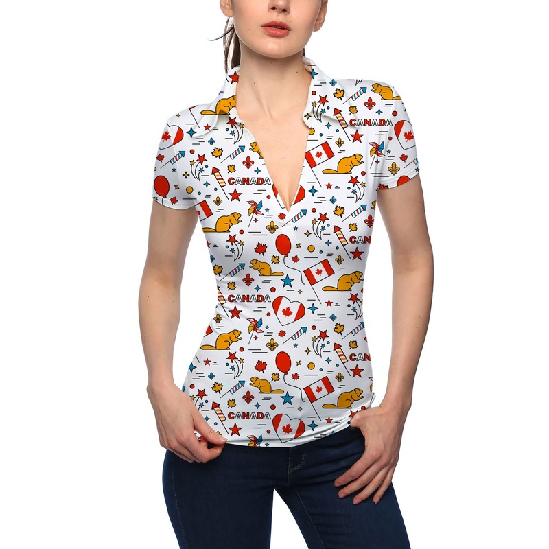 Women’s Canadian Balloon Squirrel V Neck Golf Polo