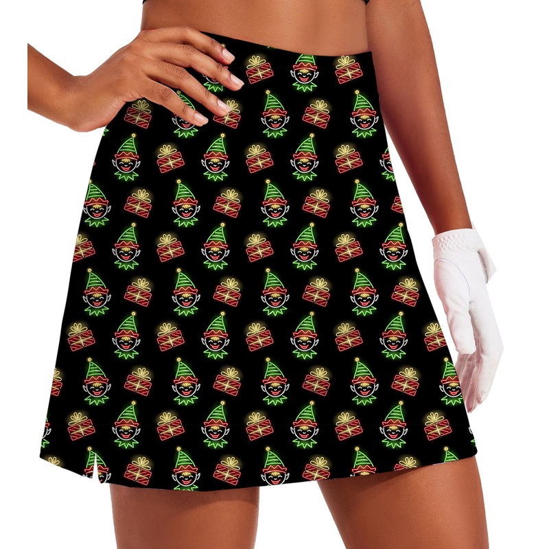 Women’s Christmas Joker Golf Skirts Inner Shorts Pocket