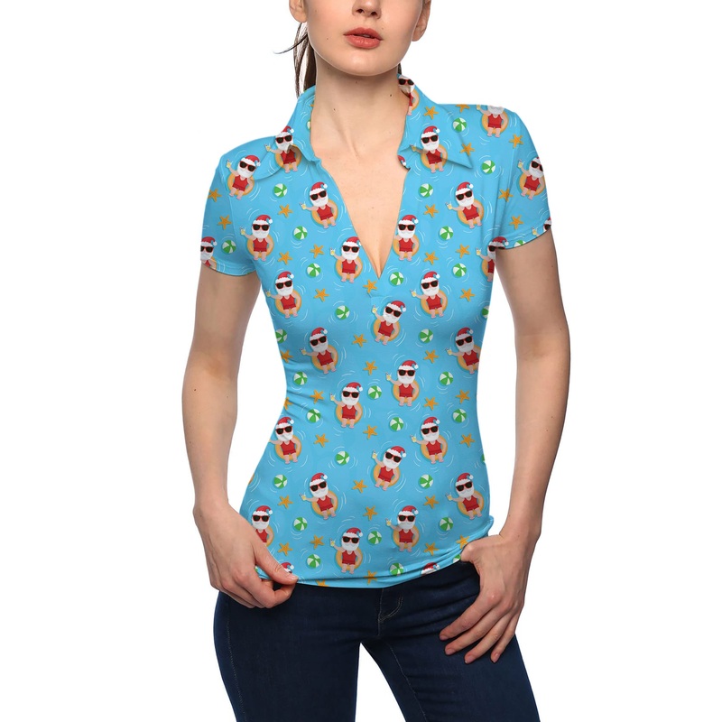 Women’s Christmas Santa Swim juice V Neck Golf Polo