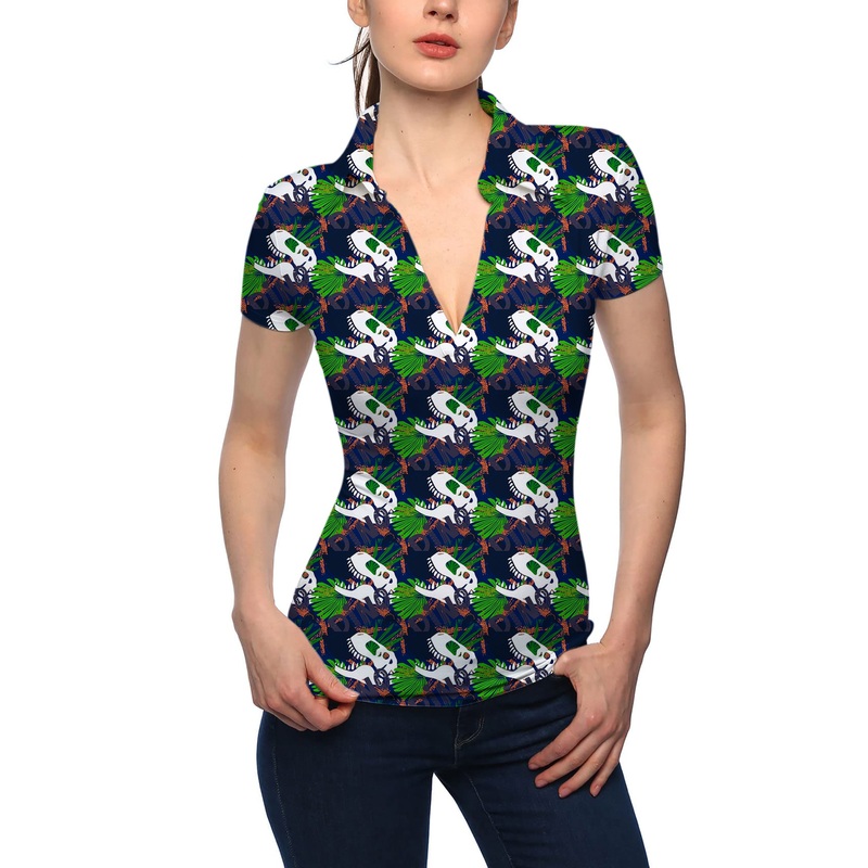 Women’s dinosaur fossil V Neck Golf Polo
