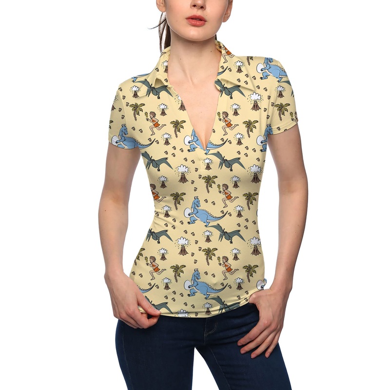 Women’s dinosaur wild man volcano V Neck Golf Polo