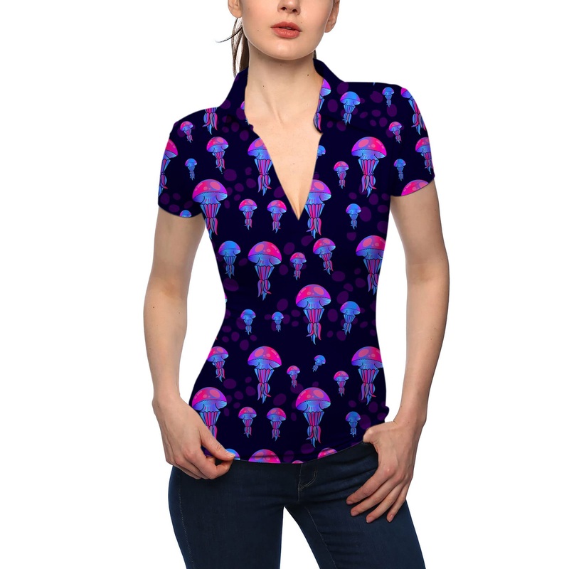1.StandCollaraccentuateyoursexycollarboneandlookelegantandstylishwithyourfavoritenecklaceorpendant.2.TheV-neckdesigncanimprovetheoveralllineandvisually,complementyourslenderneck.3.Thegolfshirtspairperfectlywithshortskirts,jeans,sportstrousers.4.Occasions:s
