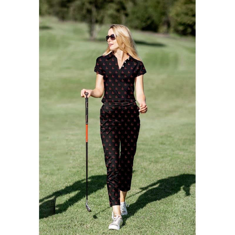 Women’s Golf Polo+Pants Set Black Custom Name Christmas