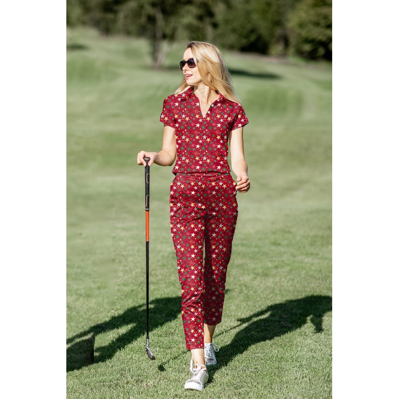 Women’s Golf Polo+Pants Set Colorful Stars Christmas