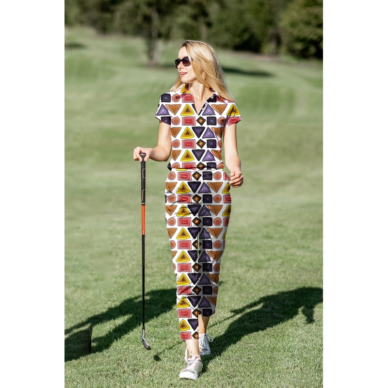 Women’s Golf Polo+Pants Set colorfull triangle tribal