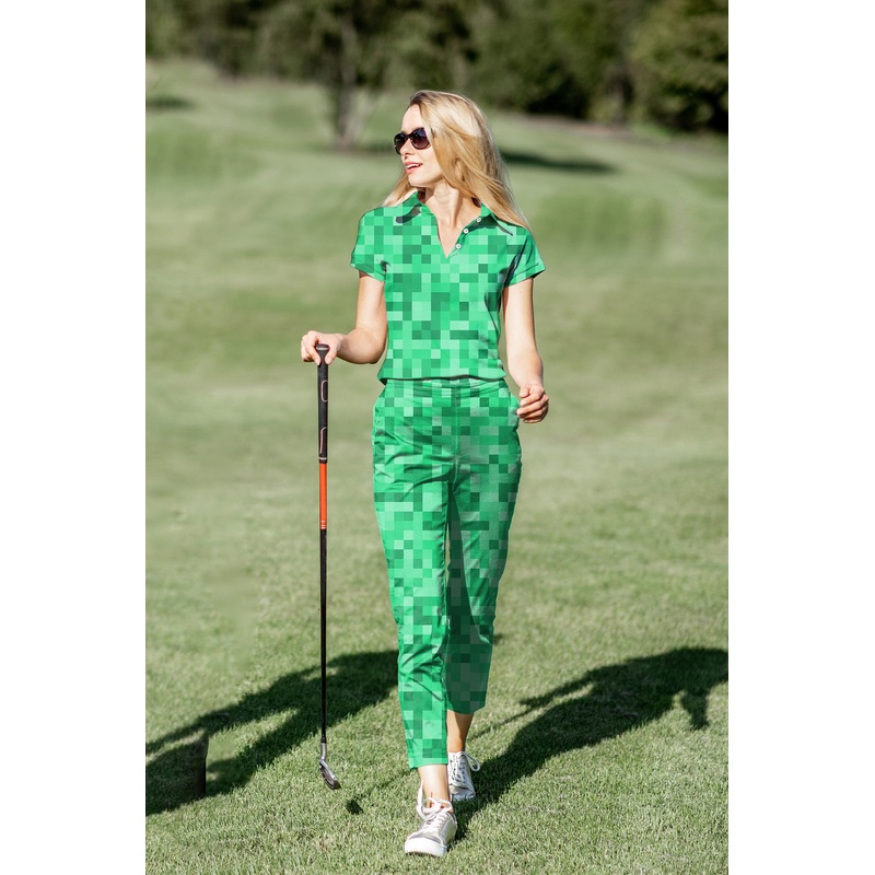 Women’s Golf Polo+Pants Set Green Pixel Big