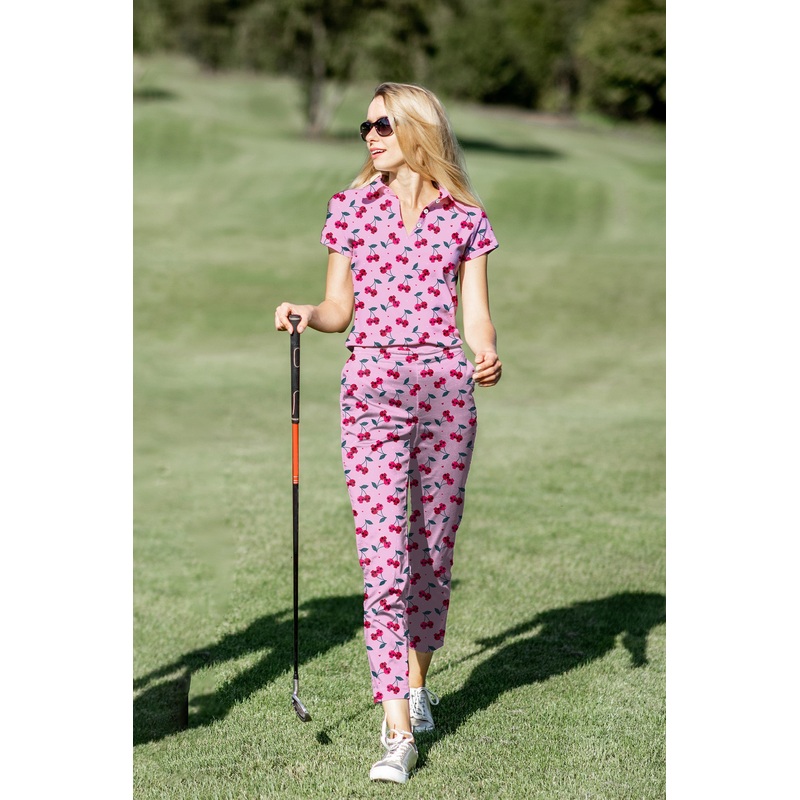 Women’s Golf Polo+Pants Set Halloween Cherry Skull