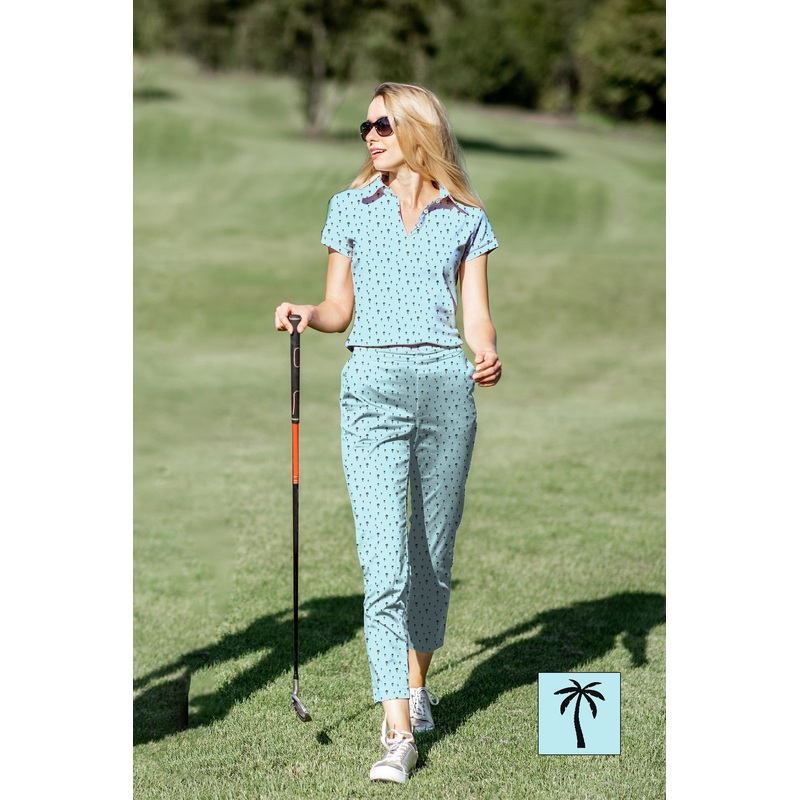 Women’s Golf Polo+Pants Set light blue palm Custom The Background Color