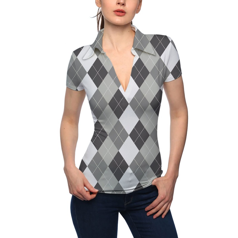 Women’s grey Argyle V Neck Golf Polo