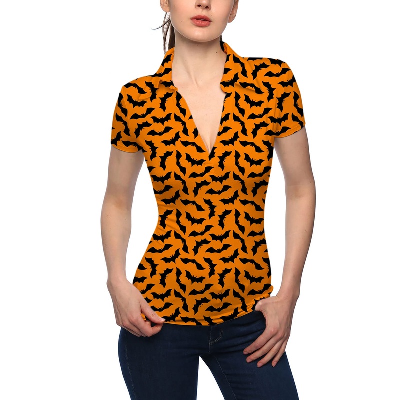 Women’s Halloween Bat Custom The Background Color V Neck Golf Polo