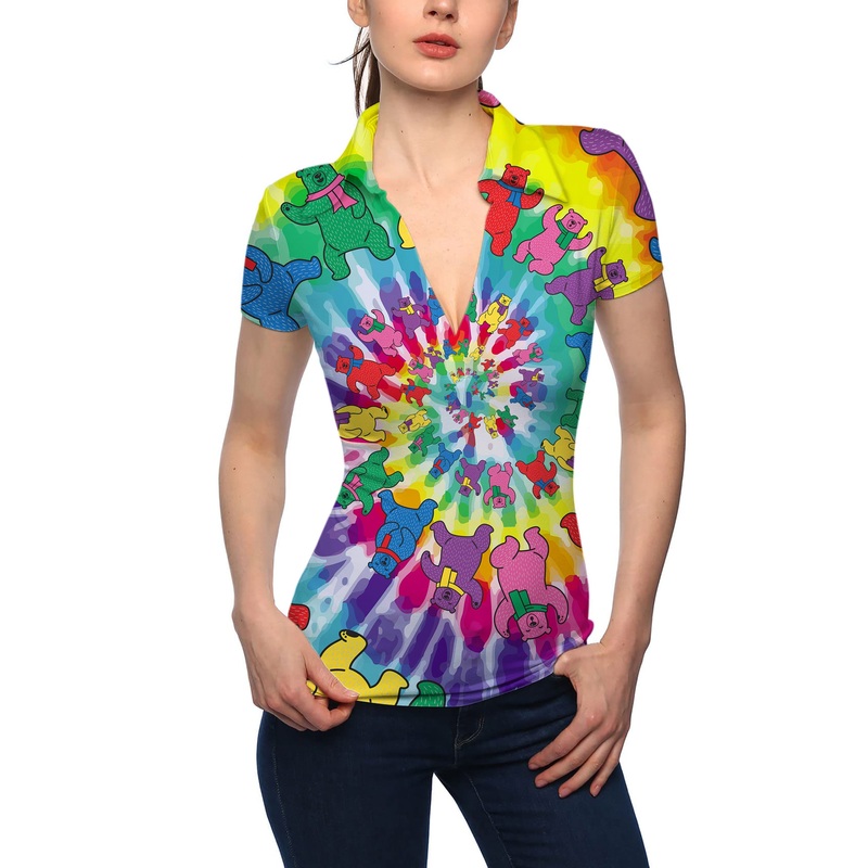 Women’s Kaleidoscope Bear V Neck Golf Polo