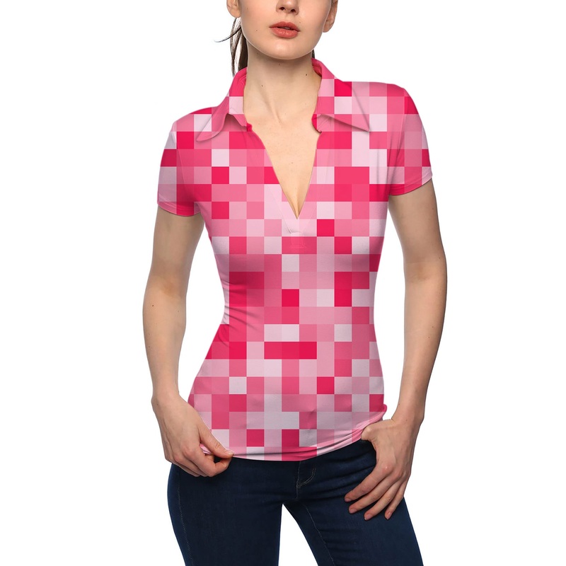 Women’s Light Red Pixel Big V Neck Golf Polo