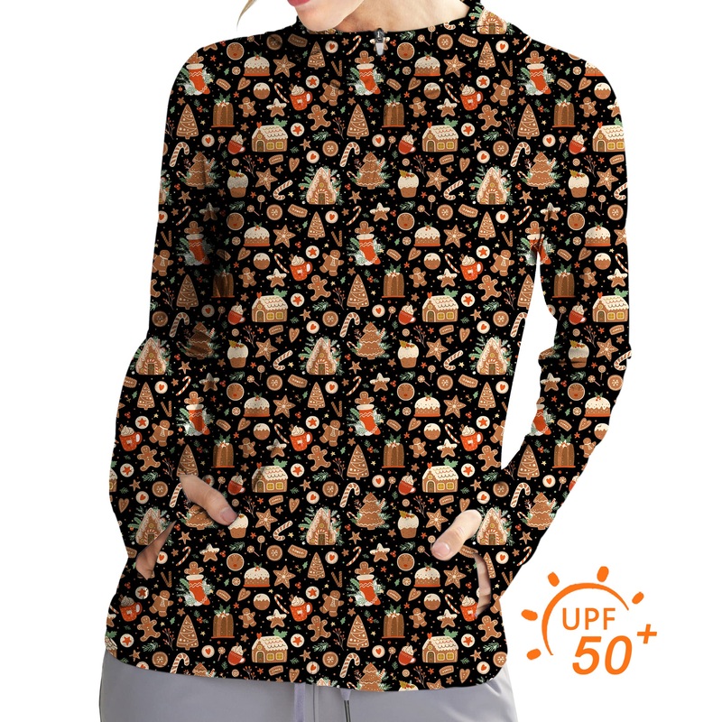 Women’s Outdoor Black Christmas Candy House Golf Sun Protection Slim Fit zip hoodies