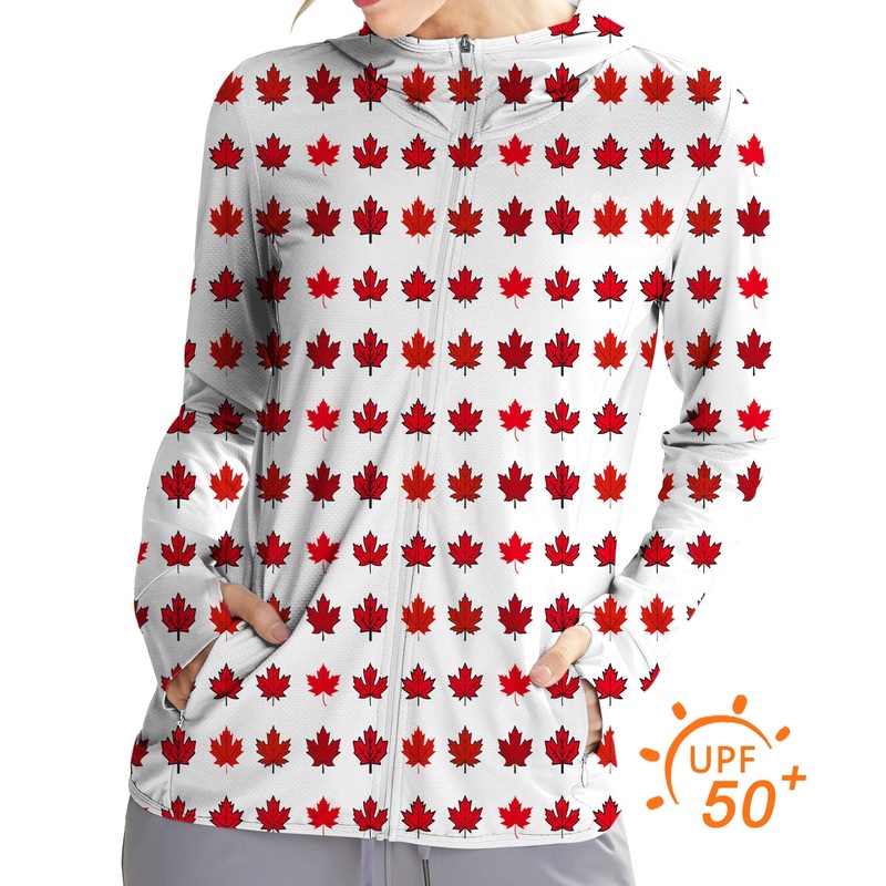 Women’s Outdoor Canada Red Maple Leaves Golf Sun Protection Slim Fit zip hoodies