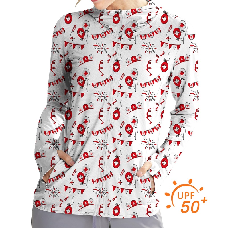 Women’s Outdoor Canadian Flag Celebration Golf Sun Protection Slim Fit zip hoodies