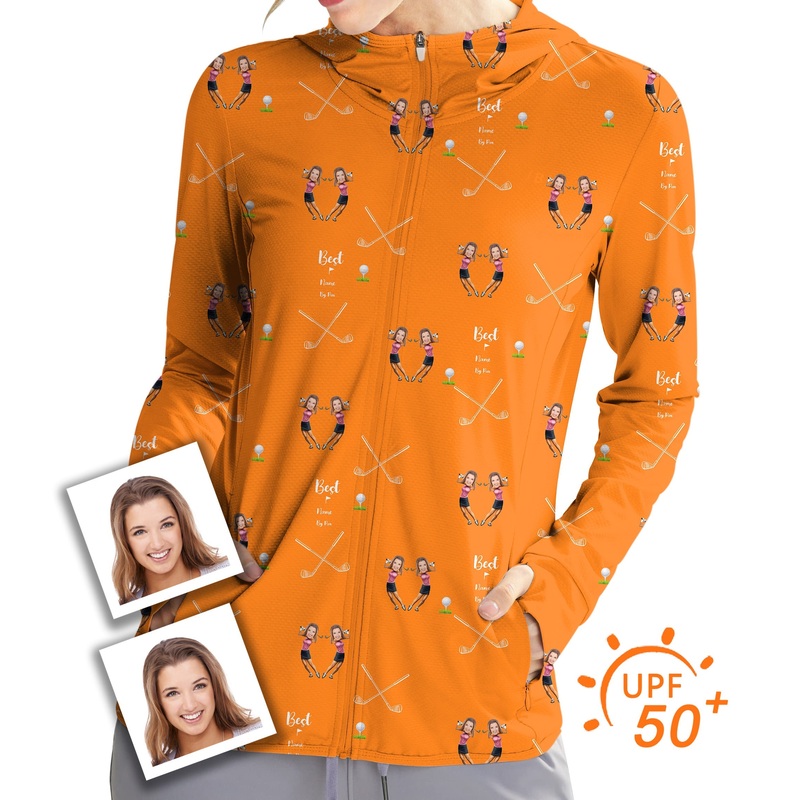 Women’s Outdoor Custom Sister Photo Face & Name Golf Sun Protection Slim Fit zip hoodies