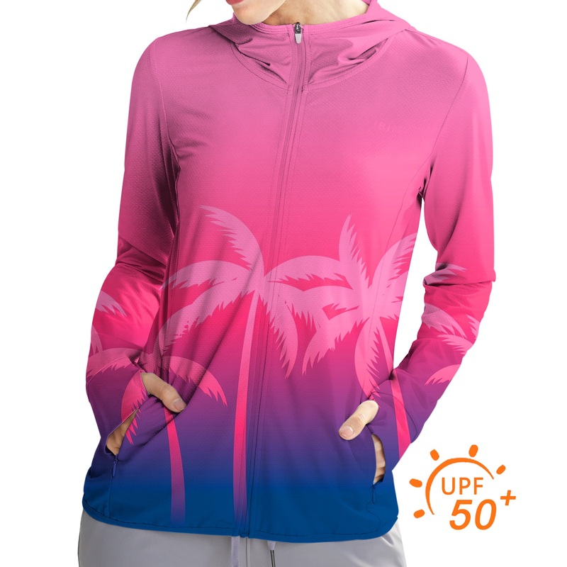 Women’s Outdoor pink palm Golf Sun Protection Slim Fit zip hoodies