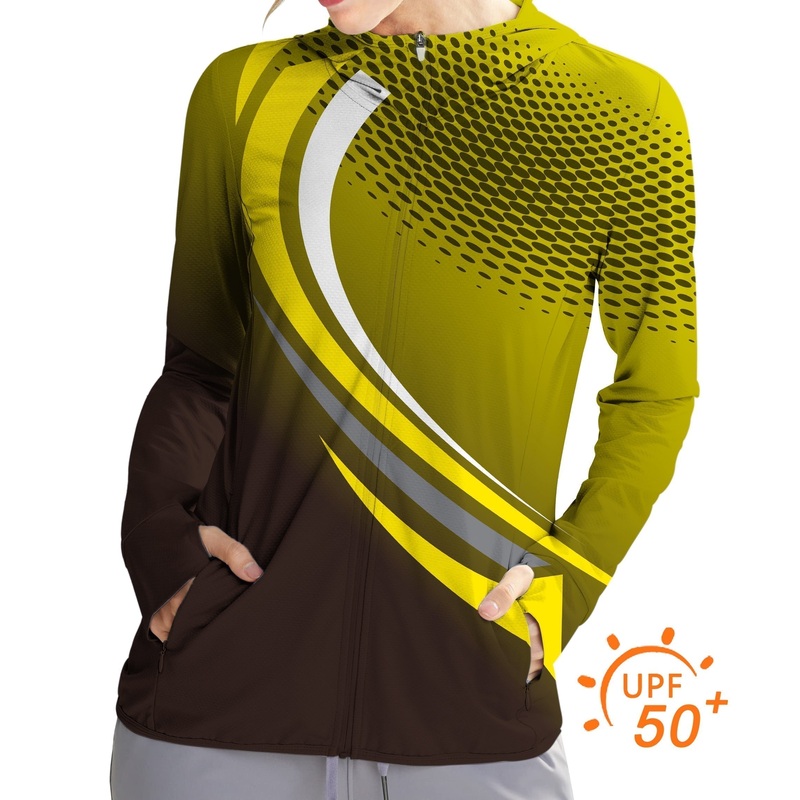 Women’s Outdoor Yellow Black Custom Sport Team Competition Uniforms Golf Sun Protection Slim Fit zip hoodies