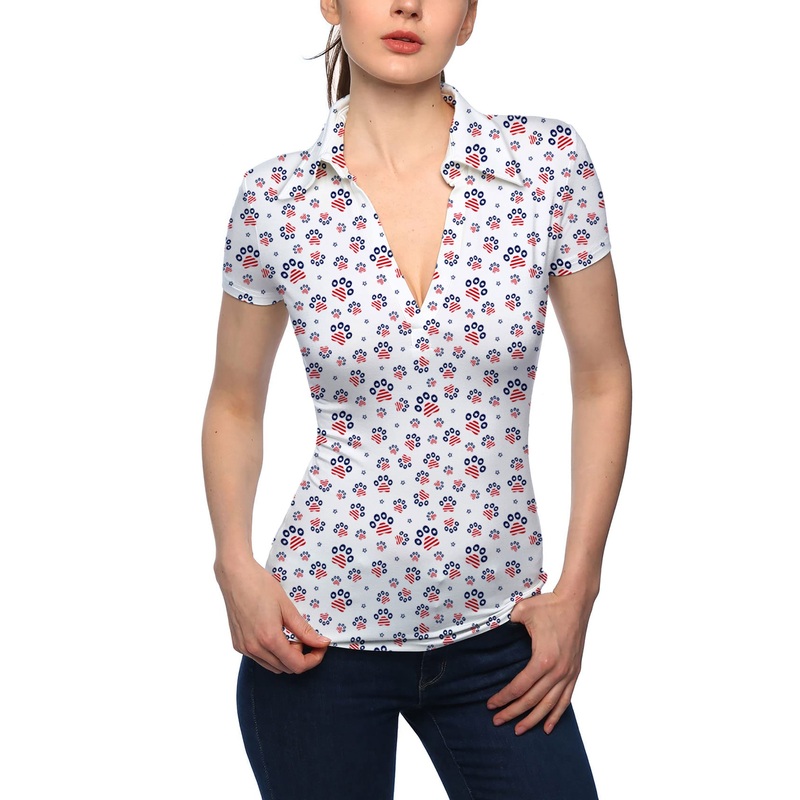Women’s PAW SITIVLEY PATRIOTIC USA V Neck Golf Polo